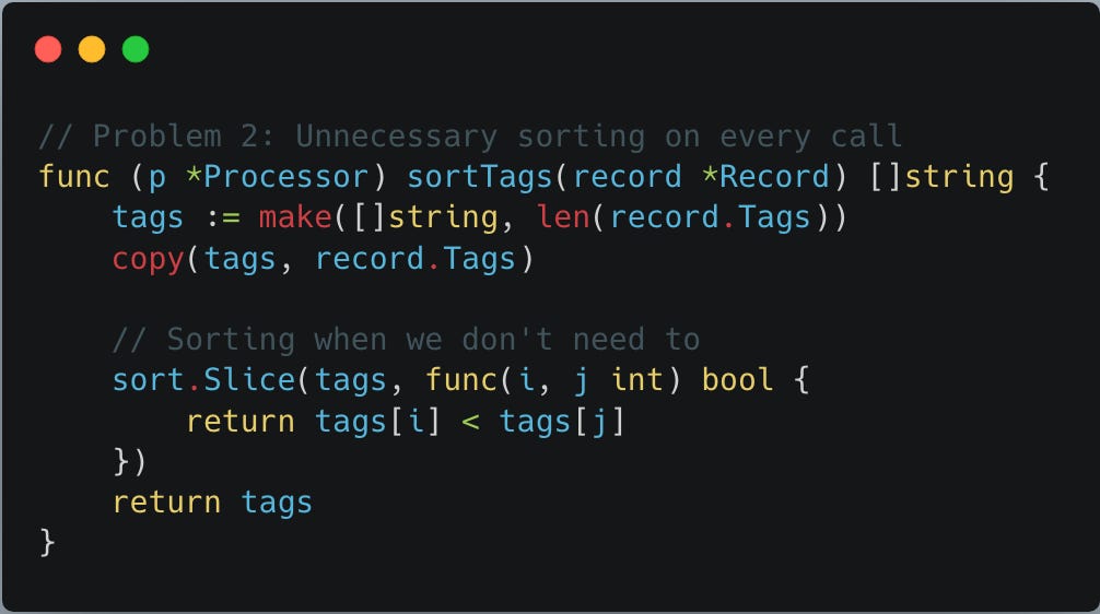 func sortTags below sorts tags on every call irrespective of whether sorting is needed or not - we will understand this better at the time of calling this func.