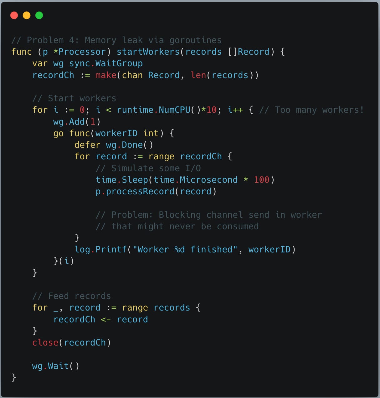 Rest of the funcs we create below are more important as they each demonstrate an individual performance problem which we will solve using pprof.