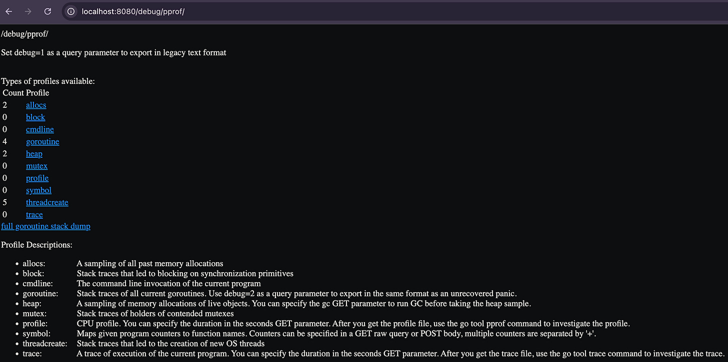 2026/02/07 12:54:19 Starting server on :8080then visit at: http://localhost:8080/debug/pprof/